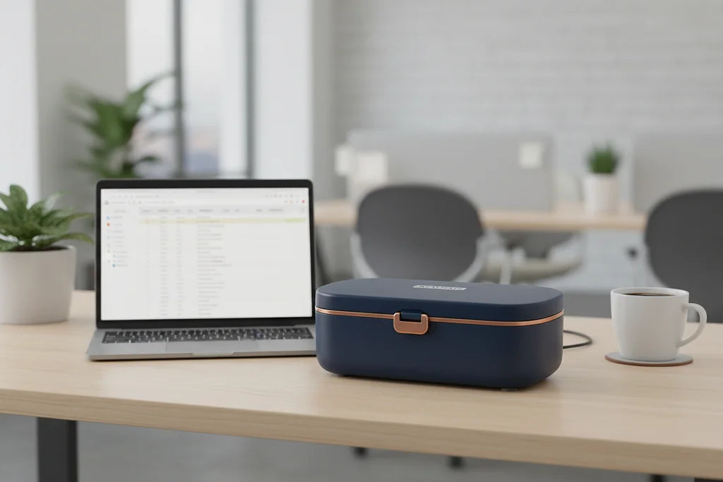 Plug it into any standard outlet at your office or use a portable power bank for ultimate flexibility.
